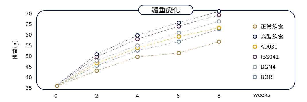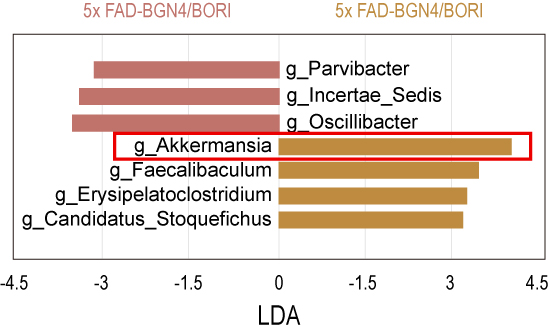 動物實驗證實,餵食 BORI & BGN4 的組別顯示出 AKK 菌比例顯著上升